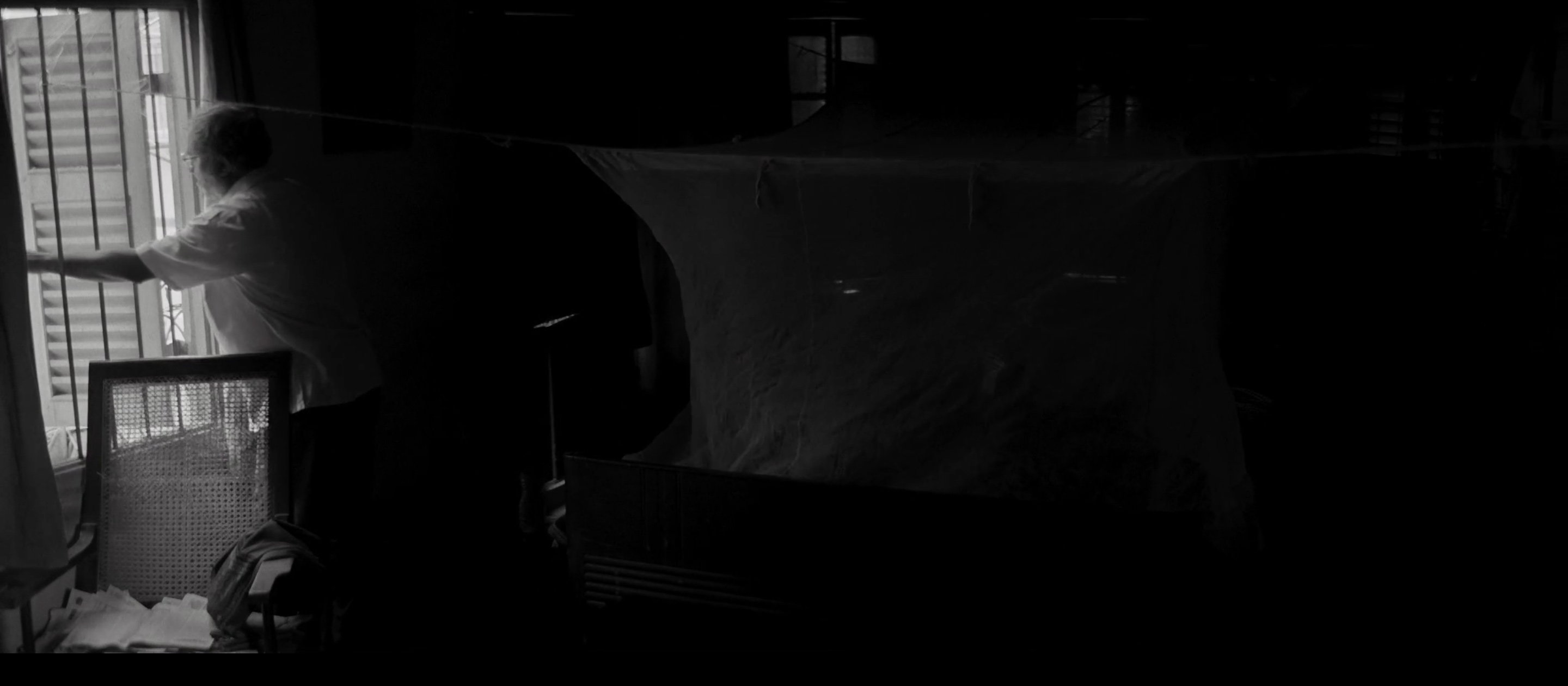The film’s striking black-and-white aesthetic effectively captures the chaos and ugliness of urban life, serving as a visual metaphor for Manik’s internal struggles. The contrast is further heightened in the vibrant, colourful moments that bookend the film, highlighting the emotional awakening when isolation meets an unexpected connection. One of the most evocative scenes features Manik bathing in rainwater within the confines of his dilapidated bathroom, where the low-angle camera work and the sound of water create an intimate, almost tantric moment of union with the cloud. This scene resonates with the poetic essence of Tagore, reflecting the transcendence of mundane existence through a profound sensory experience.